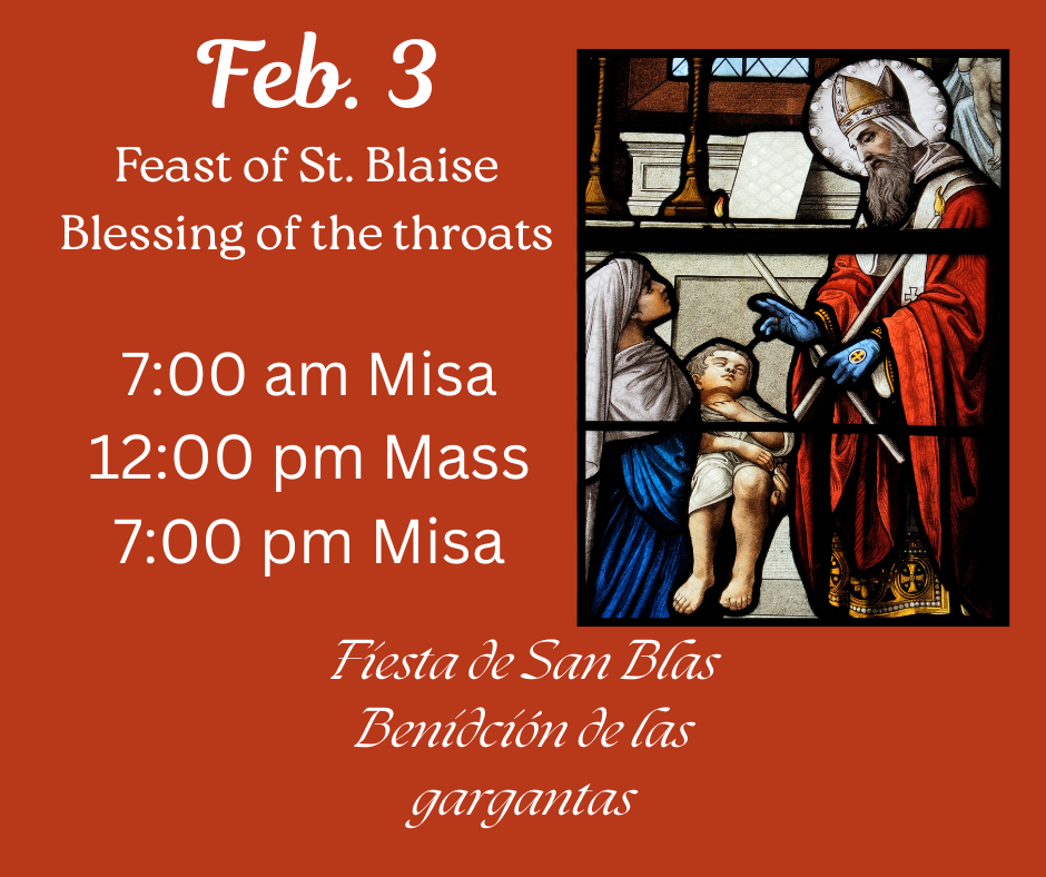 Masses for Sunday January 25, are canceled! We will only have masses on Saturday January 24 at 5pm & 7pm.
